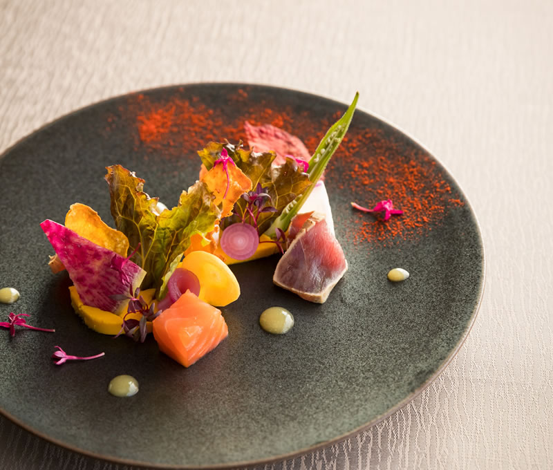兵庫で採れた旬の新鮮な野菜やA5ランク和牛など、兵庫・関西の美味しいものを使い、素材の魅力を最大限に引き出す調理法にこだわっています。ブイヨンも付け合わせも全て一から作り込む、徹底した手づくりのお料理を、最高に美味しい、絶妙のタイミングでご提供いたします。