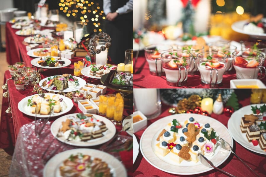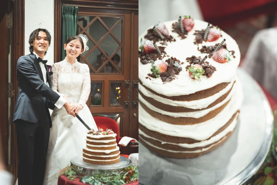 ケーキ入刀やクイズ大会など、楽しい時間を過ごされた新郎様新婦様とゲストの皆様。ゲストに喜んでいただけるようにと特にこだわられたのが、クリスマスマーケットをイメージしたデザートビュッフェ。テラスに並ぶ、かわいらしいスイーツにゲストの方々も大盛り上がりのご様子でした。ゲストの方々とご歓談やお写真を楽しまれたおふたり。おふたりだからこそのユニークな演出で、ゲストおひとりおひとりの印象に残る特別なパーティーとなりました。
