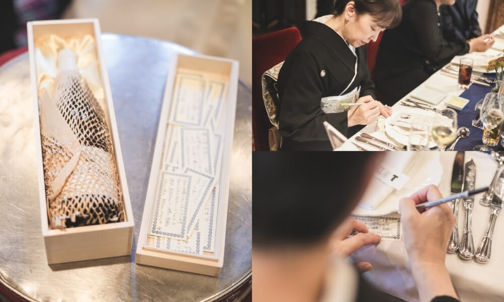 おふたりのパーティが始まる前にメッセージをゲストの方々に記入していただいたおふたり。『ワインボックスセレモニー』として、ワインの箱にゲストの方々からいただいたメッセージカードをいれて、タイムカプセルに。ご参列いただいた大好きなゲストの方々から今日この瞬間にいただいたメッセージを、年月を経てから読むことで、この瞬間を保存するような素敵な演出になりました。この瞬間瞬間を大切にしていらっしゃる新婦様らしい演出です。