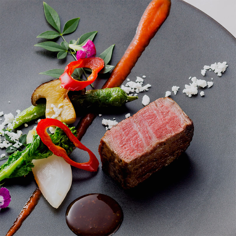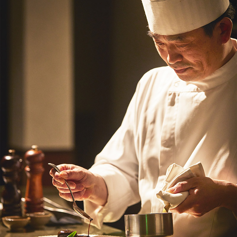 お肉料理やお魚料理はその都度焼いた、出来立てのものを。椀物などの温かいものは、温かいうちに。大切なゲストのみなさまに、いちばんおいしい状態で召し上がっていただくために、ひと皿ひと皿に手間暇を惜しまず、ご用意いたします。