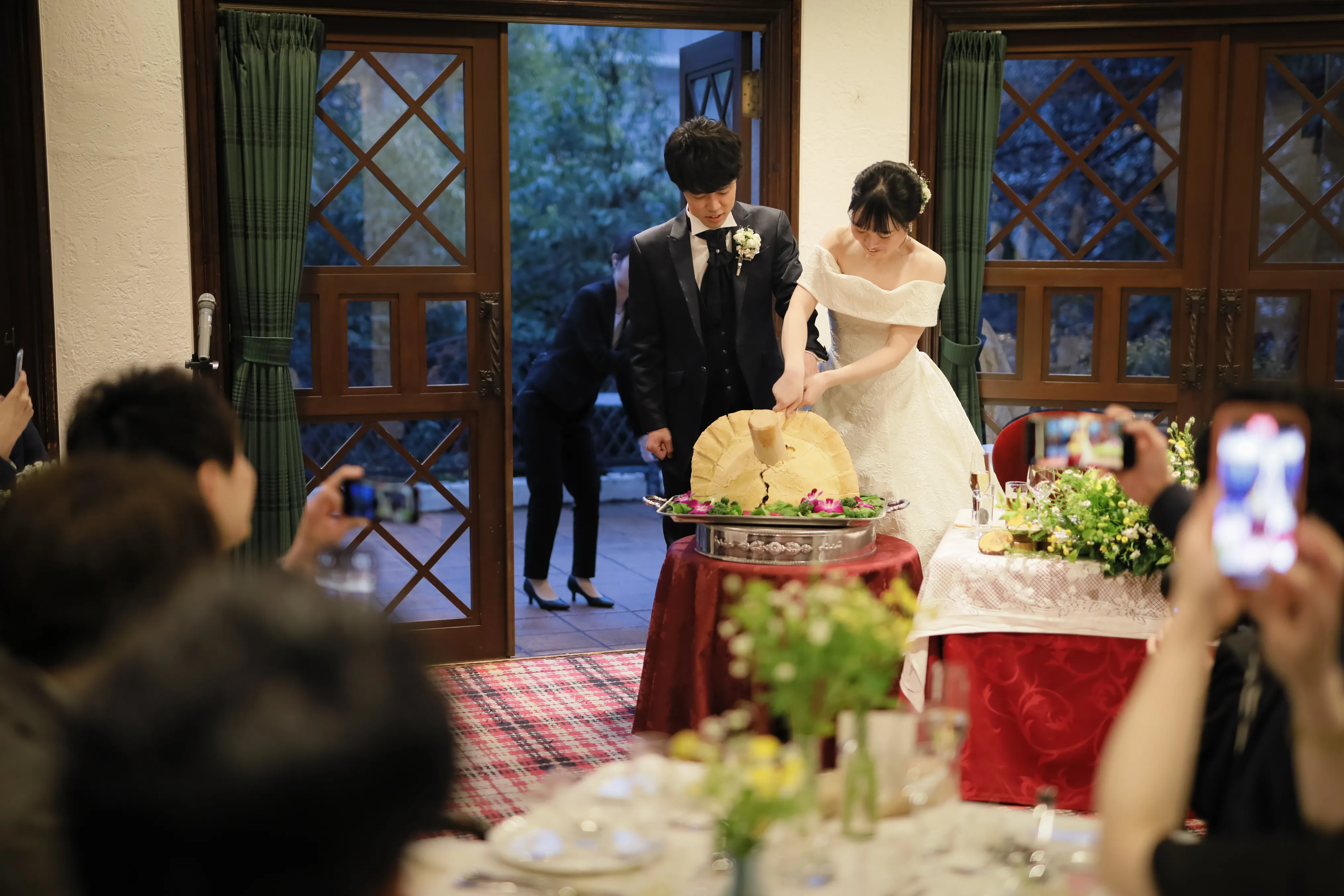 おふたりの好きなフルーツや、地元の食材を使ったケーキはもちろん、はちみつディップや、ローストビーフ入刀など、おふたりらしさを存分に演出できるケーキ入刀。おふたりのこだわりをぜひお聞かせください。