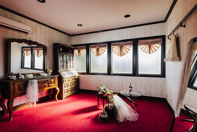 日本のシンプルな佇まいの美しさと西洋の華やぎが融合されたブライズルーム。幸せが溢れる空間で理想の花嫁姿に。