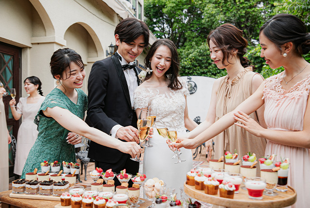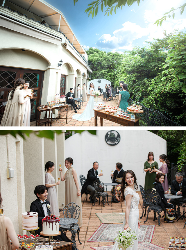 披露宴会場に隣接するテラスでは、デザートビュッフェやアフターセレモニー等、自由に過ごすことが出来ます。